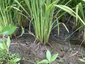 稲の葉っぱも株元も、なんかちょっと黄色っぽいし。